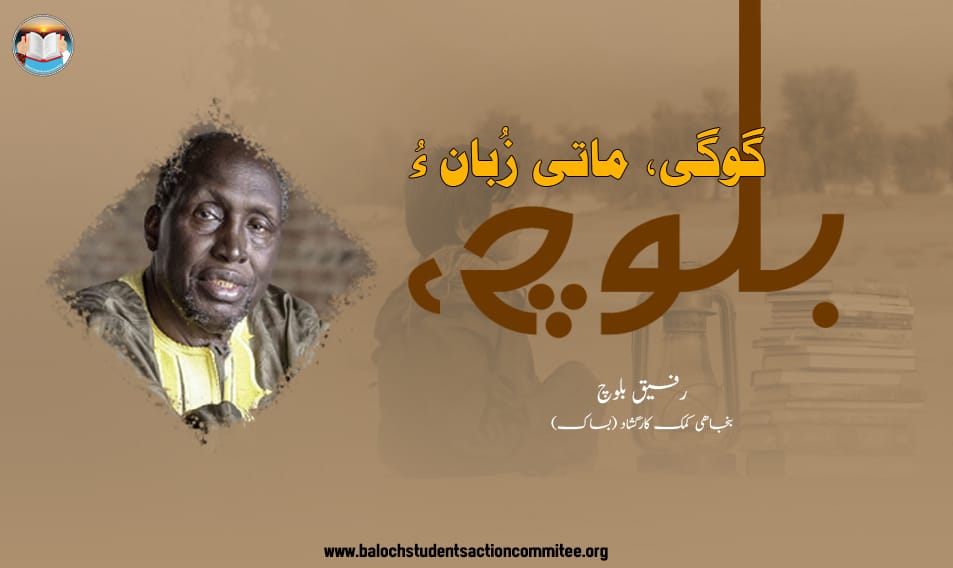 گوگی ءِ زُبان ءِ سر ءَ تْران کنگ ءُ وانگ ءَ پد ما کہ بلوچ راج ءِ سر ءِ چمشانکے دئیں گُڑا مرشی مئے دُود ءُ ربیدگ، دپتر، یاداشت، اِزم، ساز ءُ زیمل ءُ کِسّھانی گوم ءَ ھمیش بُوَگ ءَ اِنت کہ اپریکہ (افریقہ) ءِ تہ ءَ بوتگ۔ مرشی بلوچی زُبان دنیا ءِ ھما زُبانانی تہ ءَ ھوار اِنت کہ گار ءُ بیگواہ بُوَگ ءِ نیمگ ءَ روان اِنت۔ بِہ گندے مردُم اے جیڑ اَنت کہ کروڑانی کِساس ءَ مردُم بلوچی ءَ گپّ ءُ تْران کن اَنت، گُڑا بلوچی چوں گار بوت کنت۔ بلے گوں اُورتی ءَ بچاریں گُڑا ھمُک روش بلوچی گار بوھان اِنت، بلوچی ءِ لبزانی تہ ءَ دری زُبانانی لبر آھگ ءَ اَنت، بلوچ دودمان (کلچر ) گوں دومی دودماناں (کلچراں) مٹّ بوھان اِنت، بلوچی نامانی جاہ ءَ دری نام پِر کنگ بُوَگ ءَ اِنت۔