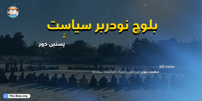کساس یک دَھکے ءَ چہ گیش بوتگ کہ بلوچ نودربر سیاست ءِ سرءَ بندش جَنگ بوتگ، نودربر رھشون شہید کنگ ءُ زندانی کنگ بوت اَنت ءُ بلوچ نودربر گل ءِ سر ءَ بندش جنگ بوت۔ ھمے میان ءَ بلوچ نودربر سیاست نزور کنگ بوت بلے تاں دیر ءَ آ اوشت آماچ نہ بوت ھردے آھاں وت ءَ مھکم کُرت پدا جہد بنا کُت۔ 2018 ءَ چہ رند پدا نودربر سیاست گام جنان بیت ءُ بلوچ سیاست ءِ تہ ءَ وتی کِرد ءَ پیلو کنت۔