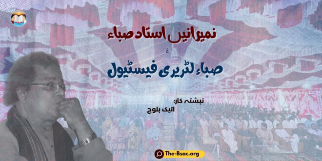 من گُڈی ءَ ھمے گُشاں کہ صباء لِٹریری فیسٹیول بساک ءِ بنجاہی پروگرام ءَ چہ یکے چوشکہ اُستاد صباء نام ءَ اِنت ، اے فیسٹیول ءِ اَرزشت ایش اِنت، کہ بلوچ نودربر ، اُستاد اسکالر ءُ نبشتہ کاراں یک انچیں تلوئے دیگ کہ آ دُرست یکیں پترءَ بلوچ دود ءُ ربیدگ ءُ لبزانک ءِ سرا مراگش بہ کن اَنت داں نودربر ءُ مھلوک ءِ میان ءَ اِلم ءُ زانت ءِ یک رژنے تالان بہ بیت ۔