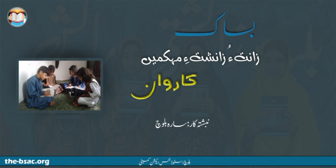 بلوچ اسٹوڈنٹس ایکشن کمیٹی ءِ چارمی بنجاہی لس مجلس بلوچ ورنایاں پہ زانت ءُ زانشت ءِ سپر ءَ مہکمی ءَ رہادگ بیگ ءِ یک مہکمیں دیوانے پرچاکہ ادارہ ءِ شعوری سفر ھمے گپ ءِ گواہ اِنت کہ علم اگاں گوں شعور ءَ ھوار بہ بیت راجانی آکبت ءَ بدل کنت۔ اے تلو ھما پگری کاروان اِنت کہ بلوچستان ءِ تہاری ءَ گوں زانت ءُ زانشت ءِ رژنا ءَ ہلاس کنگ ءَ اِنت، ءُ اے سفر دیم ءَ روان کنت داں بلوچ ورنا پہ وتی پجار ءُ ہستانک ءِ رکینگ ءِ سپر ءَ سوبین بہ بنت۔