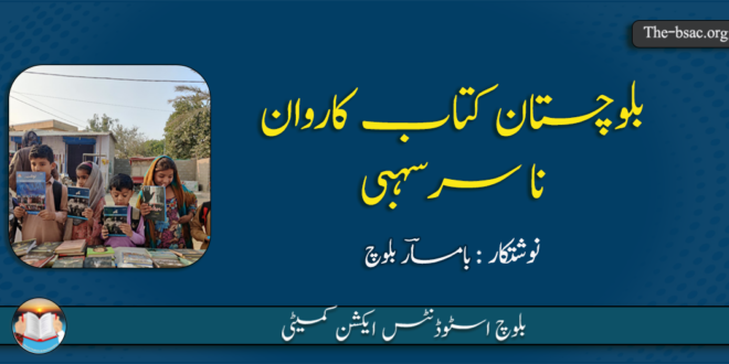 بلوچ اسٹوڈنٹس ایکشن کمیٹی نا بنداوی مسخت بلوچ ورنا تیٹی علم و چائنداری نا فکر ئس ودی کننگ۔ اینو نا جدید دور ئنا رد ئٹ کتاب آتون بھاز کم بندغ آتا خُڑکی مریک۔ ہندا سوب آن بساک نا پُروگرام آتیٹی کُل آن بھلا پُروگرام “بلوچستان کتاب کاروان” ءِ۔ دا کاروان نا بنا سال ۲۰۱۷ ٹی مس و اولیکو کتاب مُچی ۱۸ فروری ۲۰۱۷ ٹی لمئی بولی نا دے ئنا ردئٹ سریاب مِل شال ئٹ اڈ تننگا۔ مُستی مستونگ، خاران، بیسمہ، نوشکے، چاغئے و خضدار ئٹ کتاب مُچیک اڈ تننگار۔ دا کاروان اندن ترندی و مہکمی ئٹ گام خلیسہ اینو بلوچستان نا کُنڈ کُنڈ آ سر مسونے۔