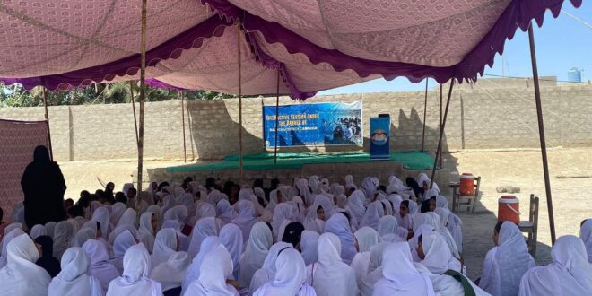داجل ڈیرہ غازی خان ءَ بلوچ لٹریسی کیمپئین ءِ مراگشے برجم دارگ بیثہ۔