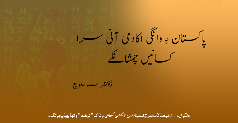 Read More »پاکستان ءِ وانگی اکادمی آنی سرا کسانیں چمشانکے : ڈاکٹر سمیہ بلوچ