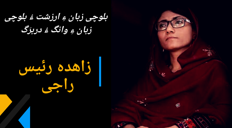 زاھدہ رئیس راجی وھدے اے سرھال من ءَ دست کپت ھیران اتاں کہ انچو سال انت من بلوچی وانگ ءُ دربرگ ءِ نیمگ ءَ اتکگ آں ھجبر نہ جیڑاتگ کہ بلوچی زبان ءِ ارزشت چی انت ءُ ھجبر چَہ وت ءَ جُست نہ کُتگوں کہ من پرچا بلوچی زبان ءَ …