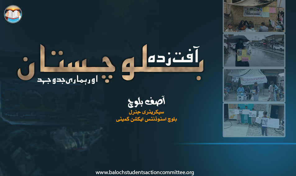 آفت زدہ بلوچستان اور ہماری جدوجہد آصف بلوچسیکریٹری جنرل بلوچ اسٹوڈنٹس ایکشن کمیٹی بلوچ اسٹوڈنٹس ایکشن کمیٹی ایک طلبا تنظیم کی حیثیت سے گزشتہ ایک دہائی سے بلوچستان بھر میں طلبا کو یکجا کرنے اور نوجوانوں کو ایک ایسی پلیٹ فارم مہیا کرنے کی جدوجہد کر رہی ہے جہاں نوجوان …