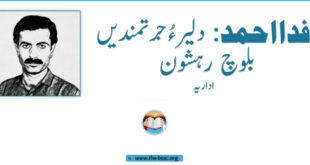 Read More »فدا احمد: دلیر ءُ جرتمندیں بلوچ رہشوناداریہ بلوچستان ءِ ہلک کیچ ءَ ودی بیوکیں فدا احمد، بلوچ راج ءِ ہما دلیر ءُ تمردیں رہشوناں چہ یکے در کئیت کہ آ بلوچ سیاست ءِ آوکیں دپتر ءَ مٹ کنگ ءَ وتی گران بھائیں کردارے پیلو کنت۔ آ وتی کسانی سالی ءِ …