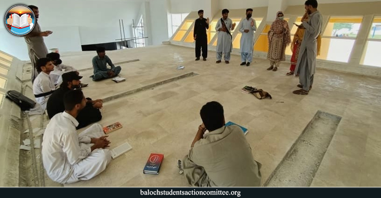 بلوچ اسٹوڈنٹس ایکشن کمیٹی خضدار زون ءِ سئیمی نوشت اسٹڈی سرکل جھلاوان میڈیکل کالج ءَ اڈ دیگ بوت سرکل ءِ تران کنوک ھنکینی کماش ھیرجان بلوچ اَت۔سرکل ءِ سرھال نادر بلوچ ءِ نبشتانک “تنظیم کاری ٹی سائنسی طریقہ کار نا گرج” اَت۔ سنگت ھیرجان بلوچ ءَ گوں لھتیں بُنیادی جُستاں …