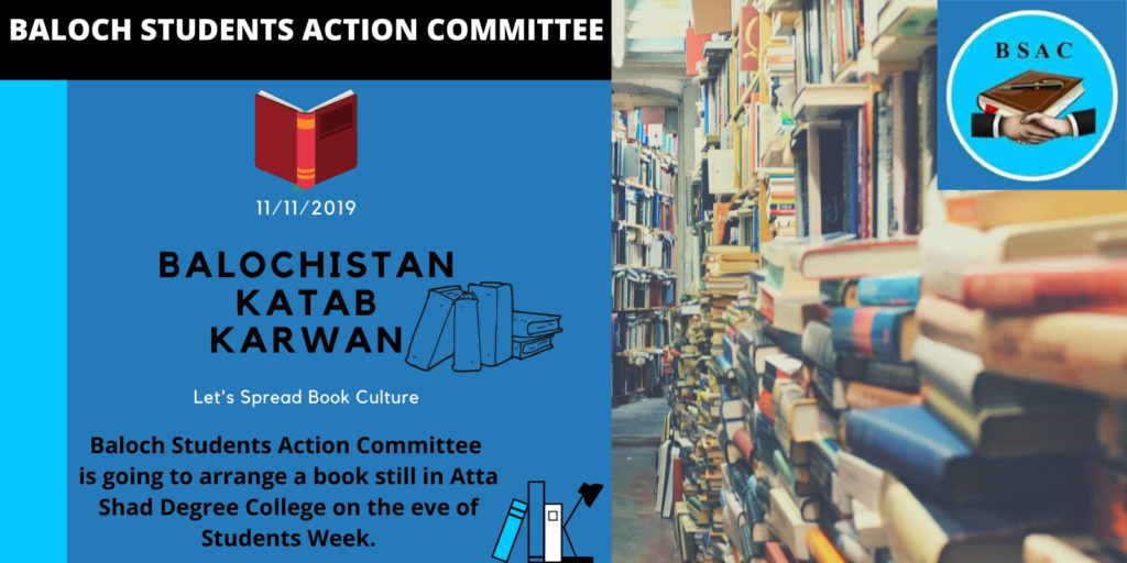 Baloch Student Action Committee (BSAC) will arrange a book still in Atta Shad Degree College on the eve of Students Week from 11th November to 13th November in the name of Balochistan Katab Karwan. Our aim is to spread knowledge across Balochistan. It’s an open invitation for all the Students …
