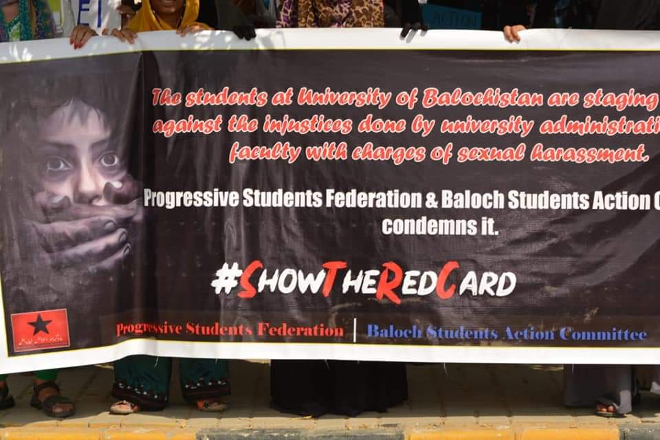 پریس کانفرنس13/11/2019معزز صحافی حضرات!جیسا کہ آپ سب کو معلوم ہے کہ چند ہفتے پہلے بلوچستان یونیورسٹی میں ایک انتہائی افسوس ناک اسکینڈل طلباء و طالبات کے ہراسمنٹ کے حوالے سے سامنے آئی اس واقعے کے بعد بلوچستان سمیت پورے ملک کے اندر بلوچستان کے سب سے بڑی تعلیمی ادارہ بلوچستان …