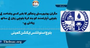 Read More »مکُران یونیورسٹی پنجگور کا بغیر کسی وضاحت کے بلوچی ڈپارٹمنٹ کو بند کرنا بلوچی زبان کے ساتھ زیادتی ہے