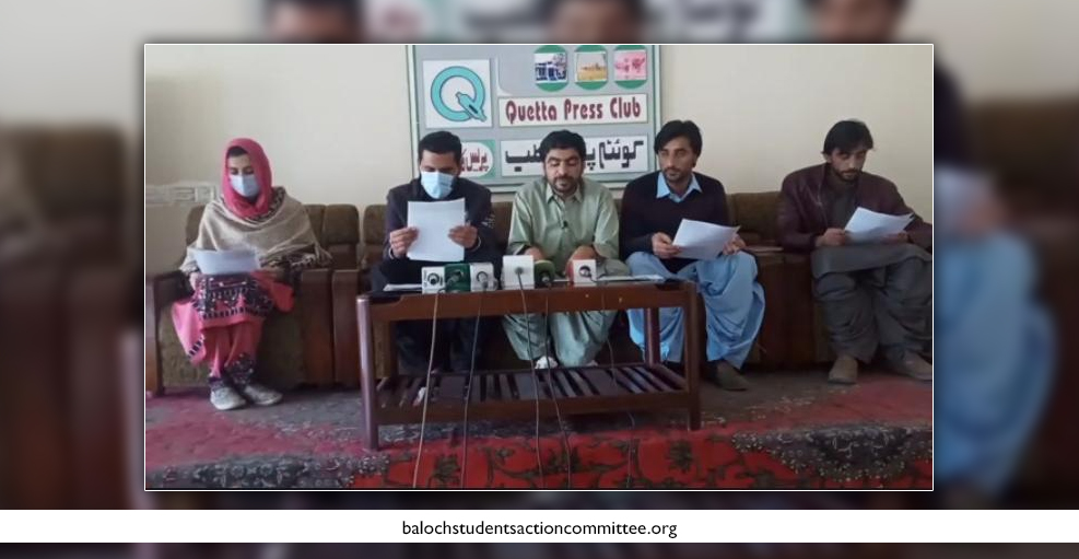 پریس کانفرنس معزز صحافی حضرات۔۔۔جیسا کہ آپ حضرات کو معلوم ہے کہ بلوچ اسٹوڈنٹس ایکشن کمیٹی کا دوسرا مرکزی کونسل سیشن بیاد شہید پروفیسر رزاق زہری ، سنگت الیاس بلوچ اور بنام سابقہ وائس چیئرمین فیروز بلوچ 26 تا 28 مارچ 2021 ء کو کراچی میں منعقد کیا گیا ۔مرکزی …
