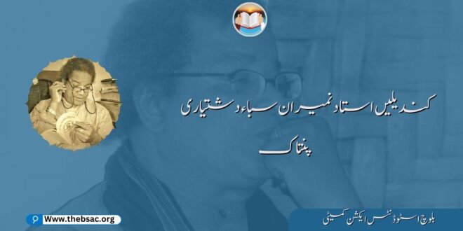 بلوچءِ باسماتریں مردم رَھدربر اَنت انچوشکہ صبا بوتگ کہ آیاں شپ ءُ روچ ھمک جاہ ءُ تبکءَ نودربراں بلوچءِ فلسفہ ءُ ایردستیءِ مارگ ءُ سما کنگءِ سنچ پیداک کرتگ، گڑا بائد نہ اِنت کہ اے گرانیں وھدءَ درستاں چہ مستریں زمہ واری رَھدربرانی کوپگءَ اِنت کہ آ صباءِ فلسفہءَ بہ زور اَنت ءُ بلوچءِ بے سمائی ءُ بے زانگیءِ جوپہءَ چہ بہ کش اَنت دانکہ ما سلکار ءُ بوہ داریں چاگردےءِ تاموسیءَ چہ آوکیں پدریچءَ رکینت کُت بہ کنیں۔