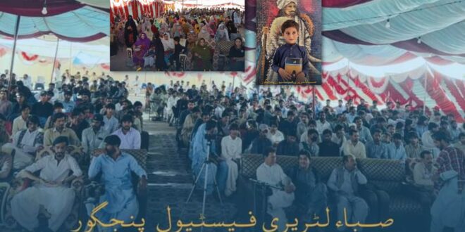 پنجگور ءَ صباء لٹریری فیسٹیول برجم دارگ بیتگ ءُ نمیرانیں صباء ءَ دروت پیش کنان ءَ آئیءِ پِگر ءُ فلسفہ ءِ سرءَ جتائیں بھراں تران بوتگ۔ مراگاہ رنگا رنگیں بھراں گوں چاروک ءُ گوشداروکاں ھدوناکیءِ درانگاز کت، مراگاہءِ رنگا رنگیں بھراں زانتکاراں گشتانک، پینل ڈسکشن، ٹیبلو، صباءءِ زِند سرءَ ڈاکومنٹری، آرٹس ایگزیبیشن، شئیر ءُ شائری دیوان ءَ ھوار ساز ءُ زیمری بھر ھوار بوتگ اَنت۔ مراگاہءَ جتائیں پِڑاں گوں سیادی داروکیں مردماں بھر زُرتگ۔