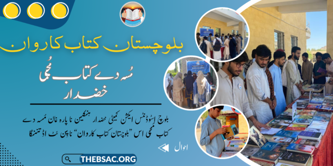 بلوچ اسٹوڈنٹس ایکشن کمیٹی خضدار ہنکین نا پارہ غان مُسہ دے کتاب مُچی اس ”بلوچستان کتاب کاروان“ نا پِن ئٹ اڈ تننگا۔