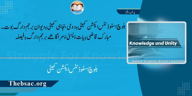 بلوچ اسٹوڈنٹس ایکشن کمیٹی ءِ دومی بنجاہی کمیٹی ءِ دیوان برجم دارگ بوت۔