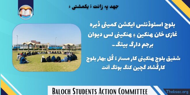 بلوچ اسٹوڈنٹس ایکشن کمیٹی بلوچ اسٹوڈنٹس ایکشن کمیٹی ڈیرہ غازی خان ہنکین ءِ ہنکینی لس …