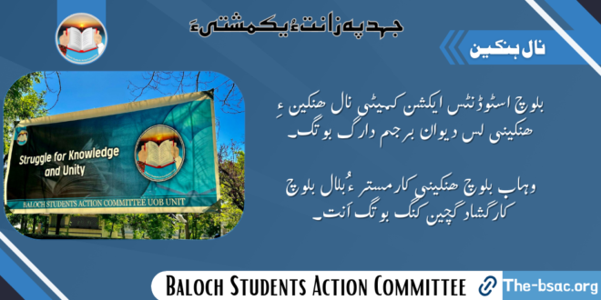 بلوچ اسٹوڈنٹس ایکشن کمیٹی نال ھنکین ءِ ھنکینی لس دیوان برجم دارگ بوتگ۔