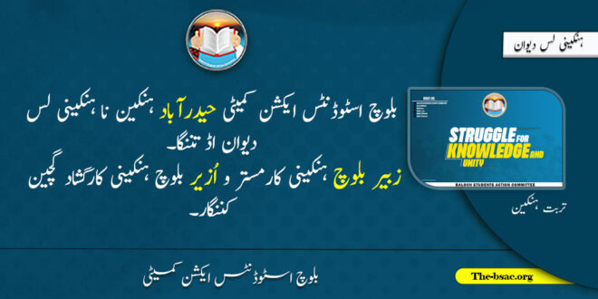 بلوچ اسٹوڈنٹس ایکشن کمیٹی حیدرآباد ہنکین نا ہنکینی لس دیوان اڈ تننگا۔