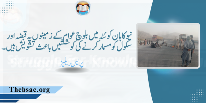 نیوکاہان کوئٹہ میں بلوچ عوام کے زمینوں پہ قبضہ اور سکول کو مسمار کرنے کی کوششیں باعث تشویش ہیں۔